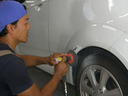 パネル復元の最終仕上げは、ペーパーの荒目から細目へ変更しボディーラインを復元していきます。