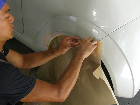 キズヘコミの損傷診断を正しく行いお客様と一緒にお見積り。お客様にご納得頂いた上、作業に取りかかります。