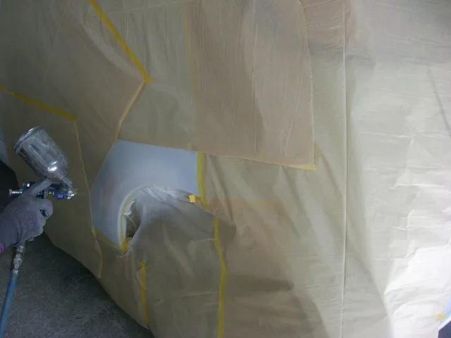 赤外線ヒーターなどで十分にサフェーサー面を乾燥させます。
