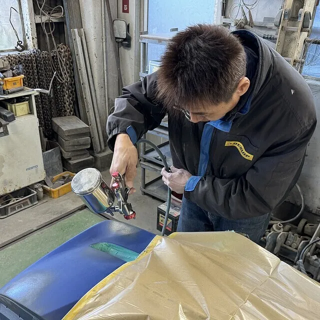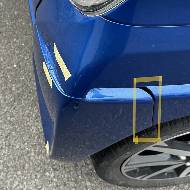 バンパーコーナー部、隙間合わせの板金塗装修理です。