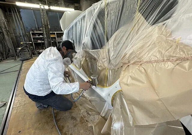今回、車両保険加入のお客様でフロント&リアドア・ステップ&クォータートリムの新品交換ステップとクォーターは板金塗装にて作業致しました。