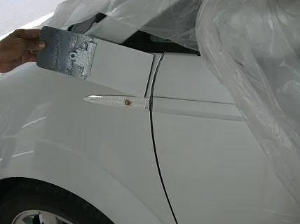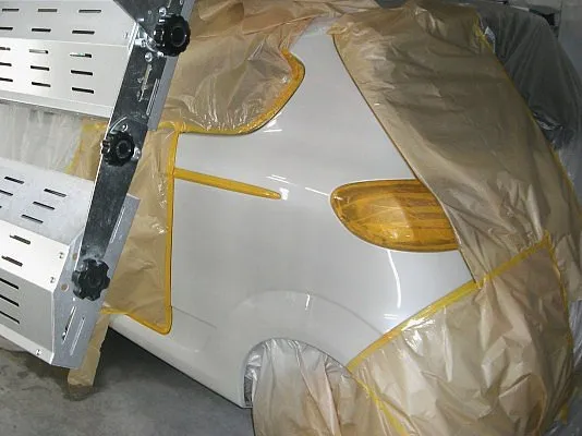 ベースコートを塗った後、最高級クリアーによりつやを与え塗膜を保護します。