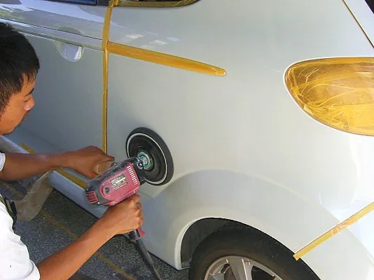 バフやコンパウンドを使いクリアーをさらに磨き上げ、ピカピカに仕上げます。