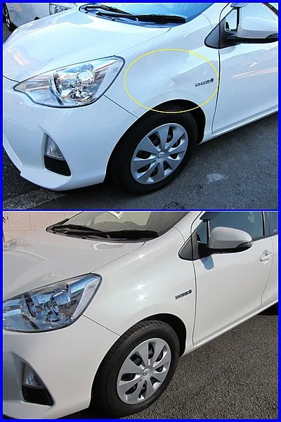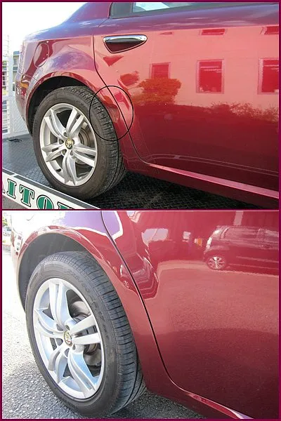 凹んだ箇所にただパテを塗るだけで無く、出来る限り板金にて現状に近づけます。綺麗に直させて頂きました。外車もお気軽にお問合せ下さい。
