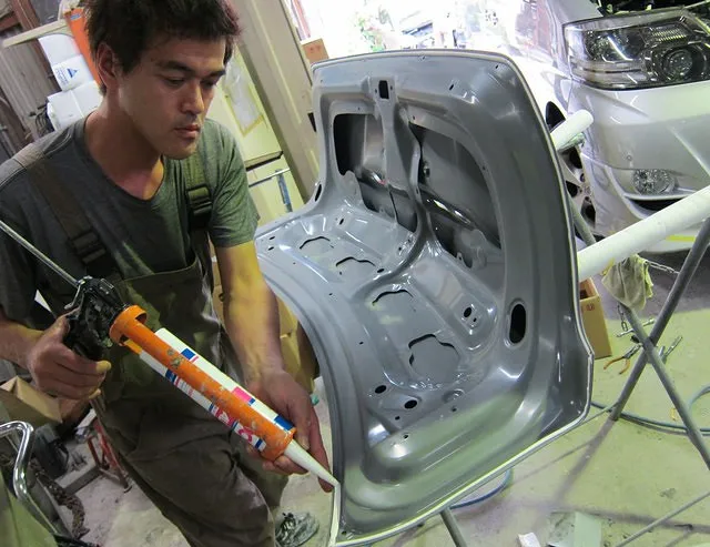 それを防ぐため塗装前に接合部分にシーリングを流し込む作業です。