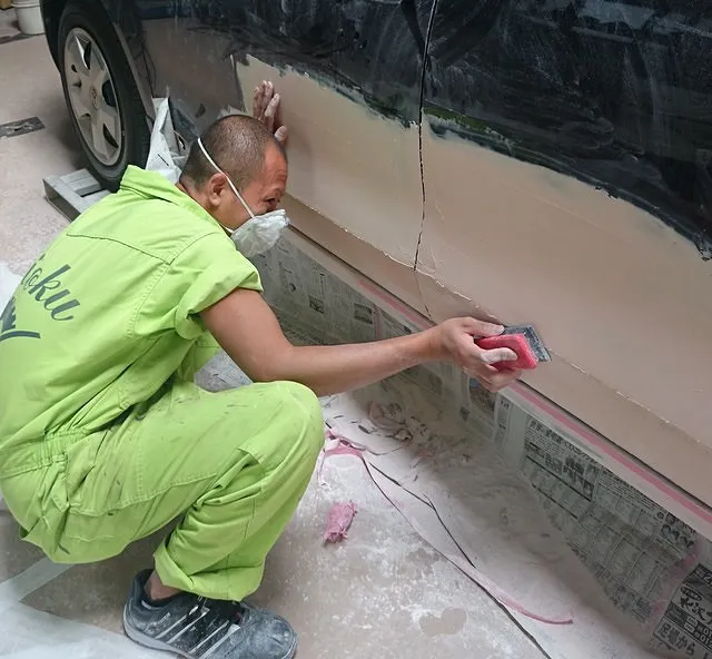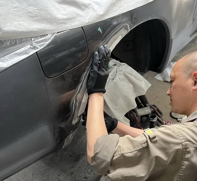 キズやヘコミの部分を板金する時は