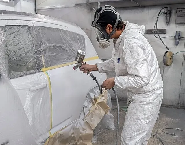 塗装ブースでホコリをシャットアウトし