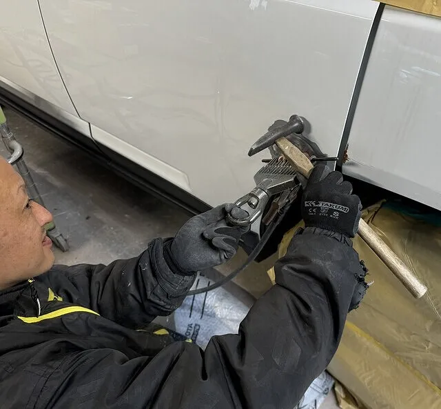 板金で不可能な酷く破損したバネルを取り外し