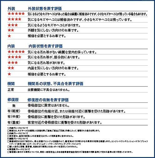 外装のキズやヘコミ、内装の汚れなど、補修の必要があるかどうか
