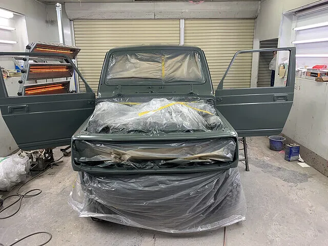バンパー&グリル&ハンドルはマッドブラック塗装 ヘッドライトはインナーブラックで仕上げました。