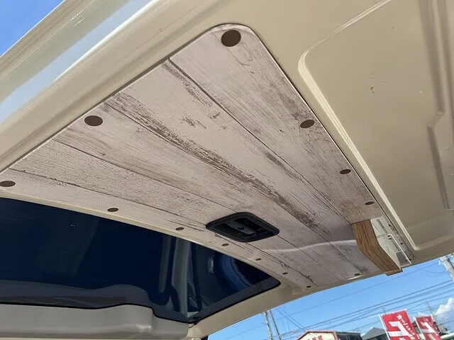 床はフローリングに変更トリムはフロアと同じ柄で仕上げました。天張りはダウンライトの埋め込み!